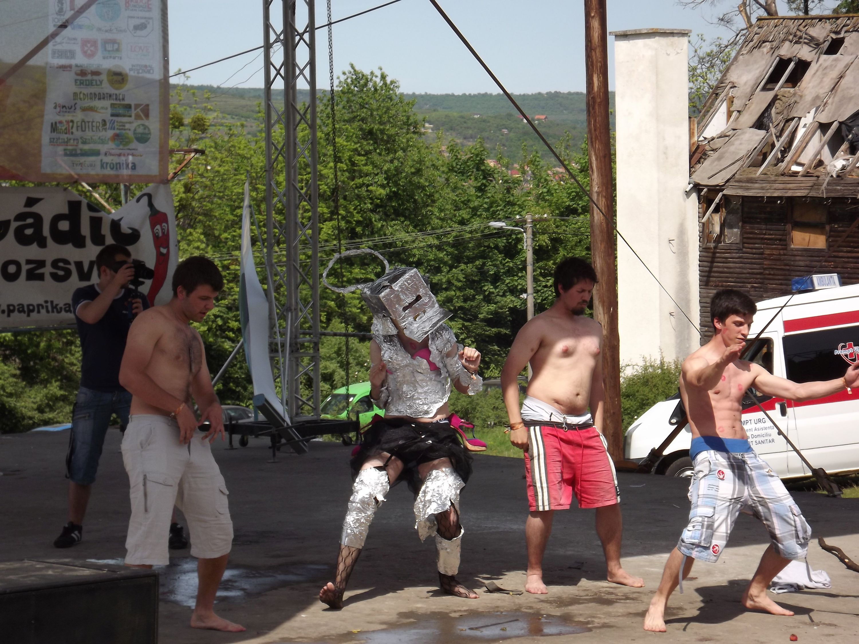 Őrületes show-nak lehettek szemtanúi mindazok, akik tegnap Törökvágáson megtekintették az elmaradhatatlan, minden évben megrendezett diáknapi férfisztriptízt. Csapatonként négy srác vetkőzött a népes rajongótábor előtt. Néhány fellépőről bátran kijelenthetjük, hogy hivatásos sztriptíztáncos módjára vette le a női közönséget a lábáról. Erotikus csípőmozdulatok, kockás hasak látványa izzasztotta a hölgyeket. A sztriptíz bizonyos elemei akár megbotránkozást is kelthettek a konzervatívabb fiatalok körében, akik lássuk be, kevesen vannak, de akadnak ilyenek is. Voltak olyanok, akik kreatívitásukkal nyerték el a közönség tetszését. Egyes fellépők ötletes göncökből vetkőzték ki magukat, vagy ellenkezőleg: a koreográfiáját a visszájára fordítva, alsónadrágban léptek fel és ruhában szálltak le a színpadról. Láthattunk szexi vízgázszerelőt, skótszoknyásokat, pasikat melltartóban, magassarkúban, esetleg pelenkát viselve, ami inkább kínos volt, mint erotikus látvány. Néhányan a jól bevált, minden éven előadott produkciójukkal rukkoltak elő, mint például a Wattafák. A tavalyi férfisztriptízhez képest az idei viszonylag visszafogott volt, kevésbé szenvedélyes. De voltak azért profin előadott számok is.