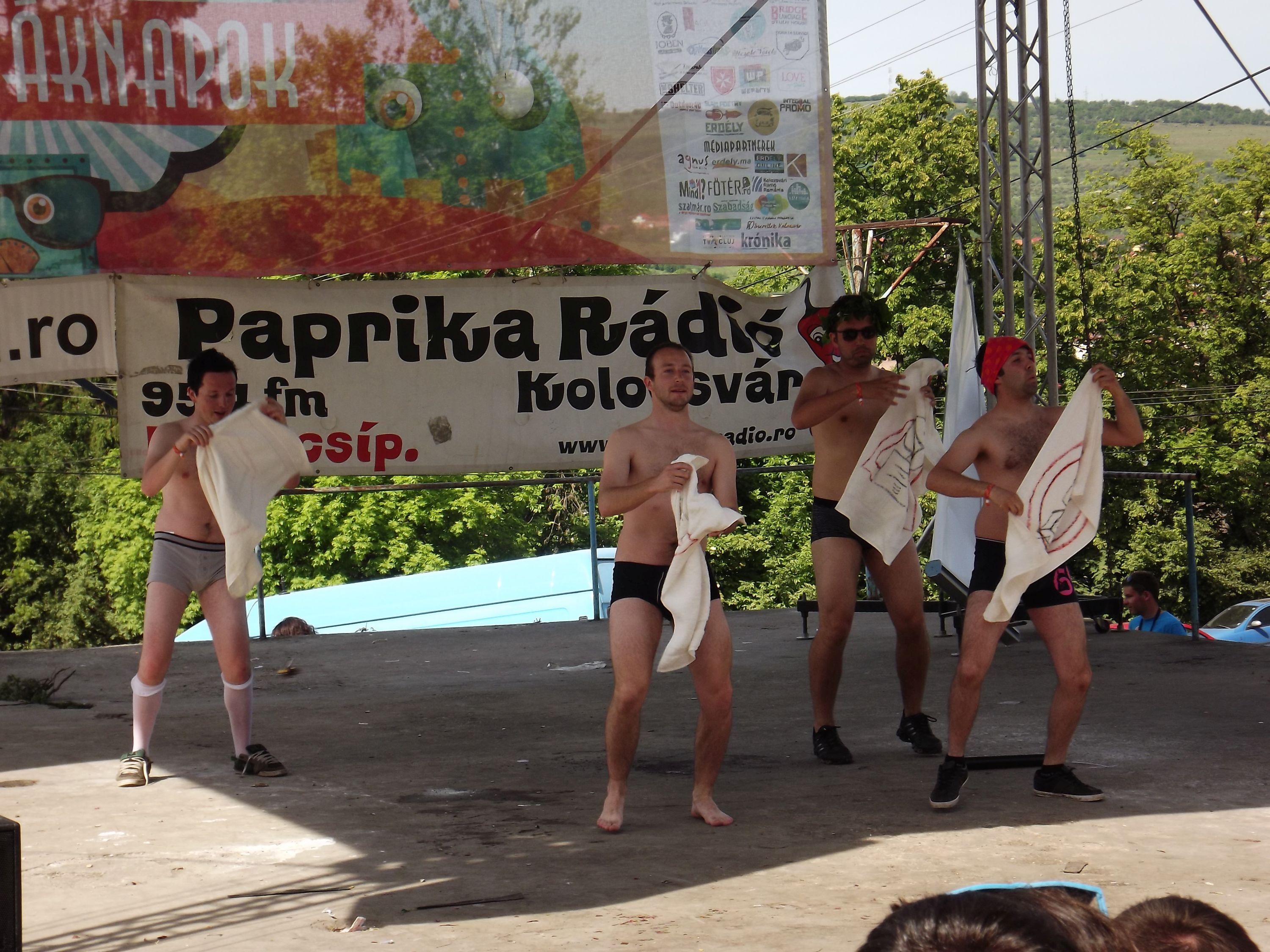Őrületes show-nak lehettek szemtanúi mindazok, akik tegnap Törökvágáson megtekintették az elmaradhatatlan, minden évben megrendezett diáknapi férfisztriptízt. Csapatonként négy srác vetkőzött a népes rajongótábor előtt. Néhány fellépőről bátran kijelenthetjük, hogy hivatásos sztriptíztáncos módjára vette le a női közönséget a lábáról. Erotikus csípőmozdulatok, kockás hasak látványa izzasztotta a hölgyeket. A sztriptíz bizonyos elemei akár megbotránkozást is kelthettek a konzervatívabb fiatalok körében, akik lássuk be, kevesen vannak, de akadnak ilyenek is. Voltak olyanok, akik kreatívitásukkal nyerték el a közönség tetszését. Egyes fellépők ötletes göncökből vetkőzték ki magukat, vagy ellenkezőleg: a koreográfiáját a visszájára fordítva, alsónadrágban léptek fel és ruhában szálltak le a színpadról. Láthattunk szexi vízgázszerelőt, skótszoknyásokat, pasikat melltartóban, magassarkúban, esetleg pelenkát viselve, ami inkább kínos volt, mint erotikus látvány. Néhányan a jól bevált, minden éven előadott produkciójukkal rukkoltak elő, mint például a Wattafák. A tavalyi férfisztriptízhez képest az idei viszonylag visszafogott volt, kevésbé szenvedélyes. De voltak azért profin előadott számok is.